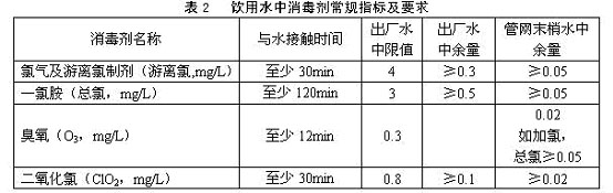 4.1.6 生活飲用水水質應符合表1和表3衛生要求。集中式供水出廠水中消毒劑限值、出廠水和管網末梢水中消毒劑余量均應符合表2要求。